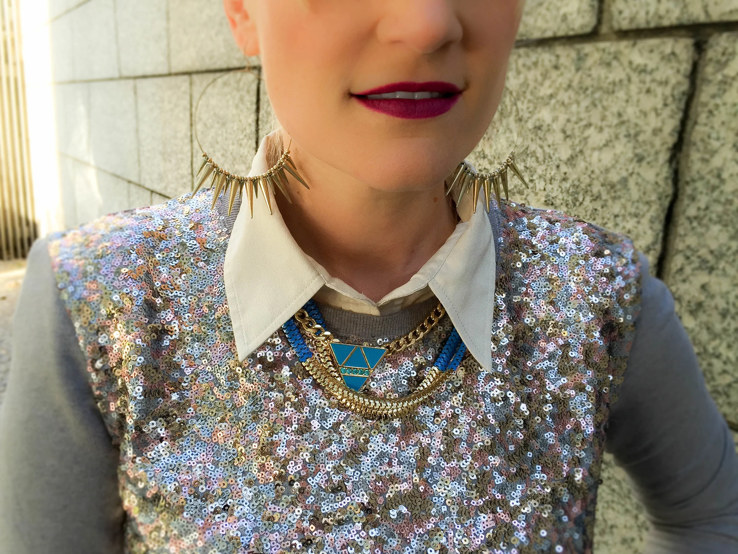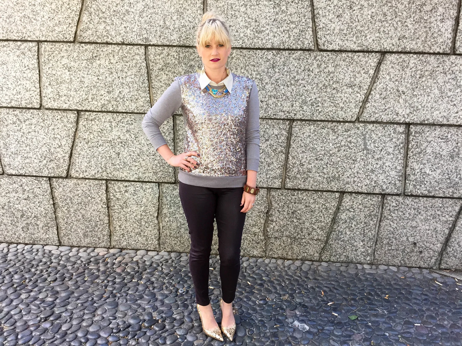 Sweatshirt: Halogen, Jeans: Paige Coated Verdugo; Shoes: Steve Madden (old, similar here and here)