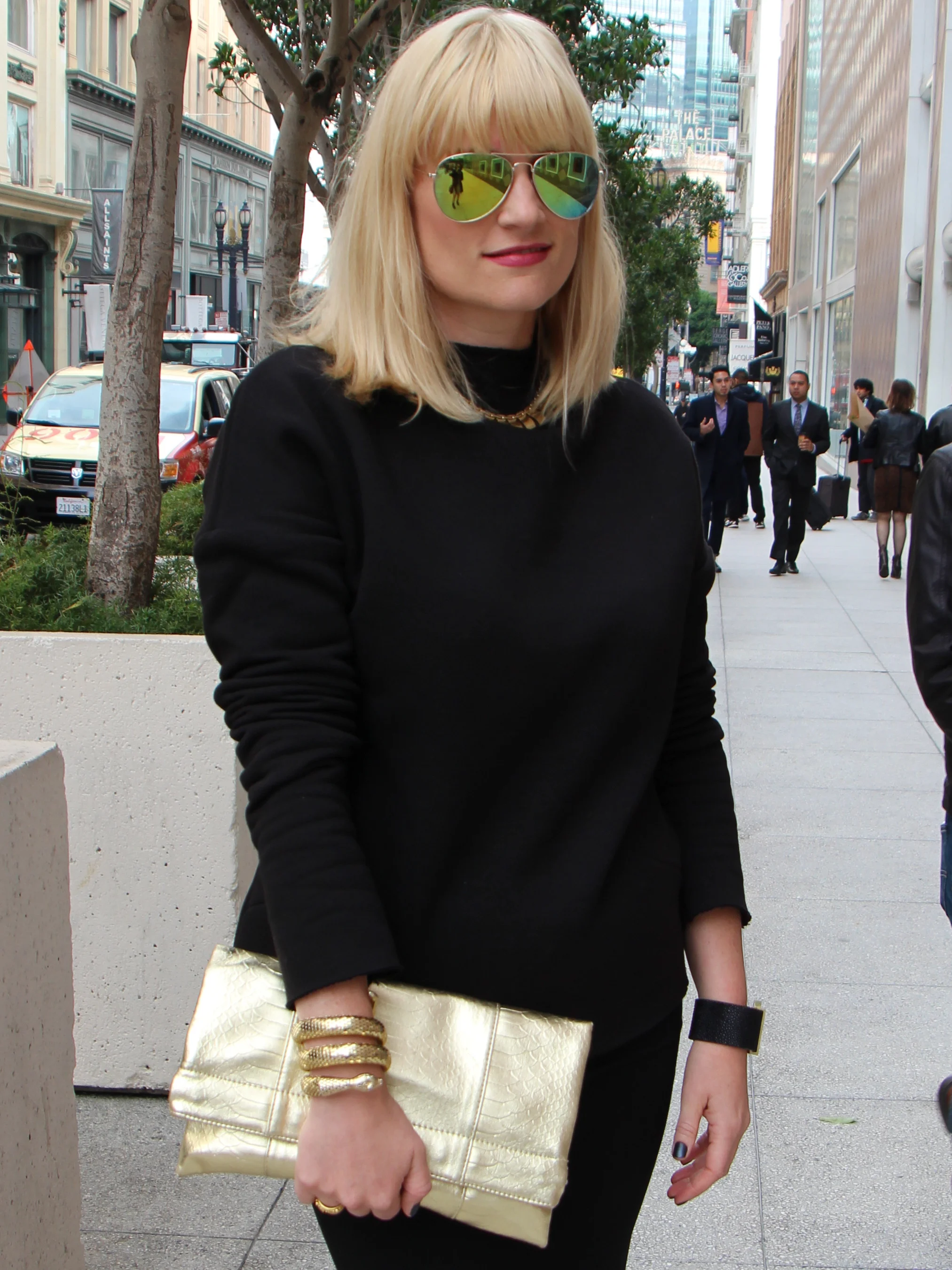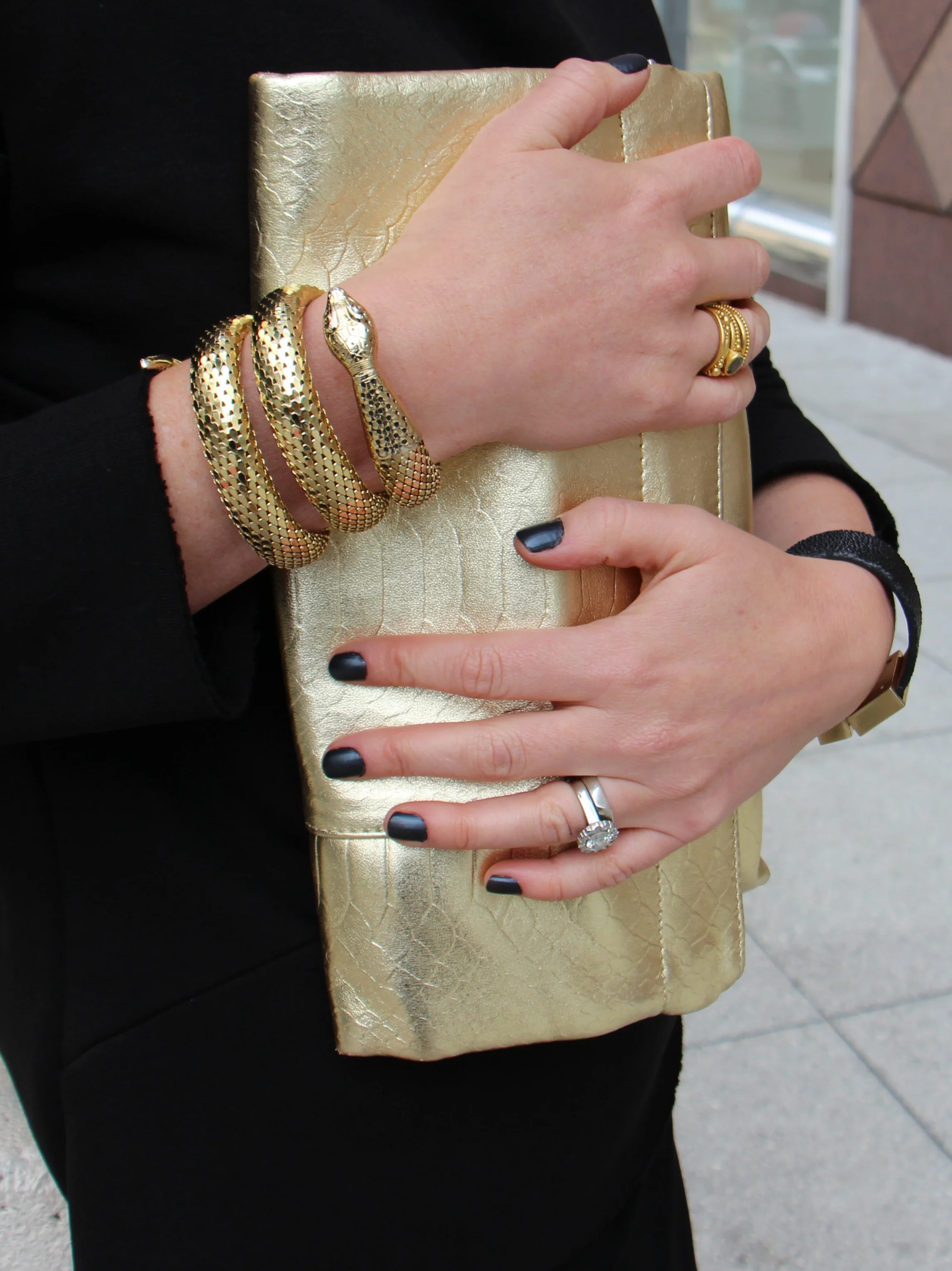 We did this shoot on a gorgeous San Francisco winter day. My outfit felt like an homage to my days in London, when black was always the predominate wardrobe choice oft the masses. I planned the outfit around this gold Whiting & Davis snake bangle that I found at a vintage store in San Mateo. It's from the 1940s and it sells at various online retailers for an exorbitant price (though occasionally I spot a deal on Etsy or Ebay). The rings are meticulously crafted by Denise Betesh, and were a gift from my oh-so-generous mother-in-law. Anyhow, the top and skirt are both Zara...I'm totally in love with the edgy fit of the mock turtleneck and the softness of it! It's quickly become a go-to on days when I want to be comfy and cozy.