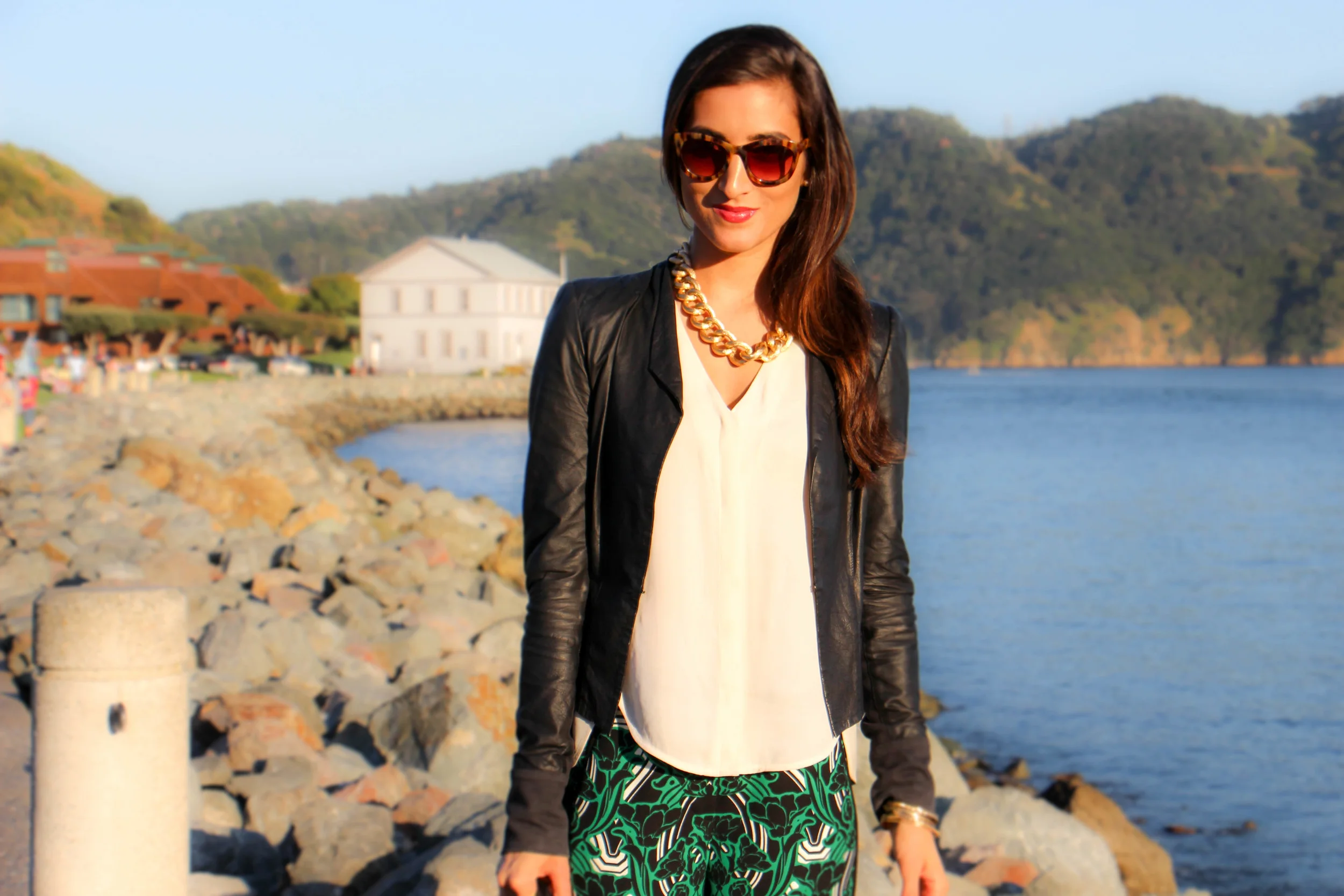 Pants: J. Crew (find similar here); Jacket: ALC (find similar here); Blouse: Theory (find similar here); Shoes: Via Spiga (find similar here)