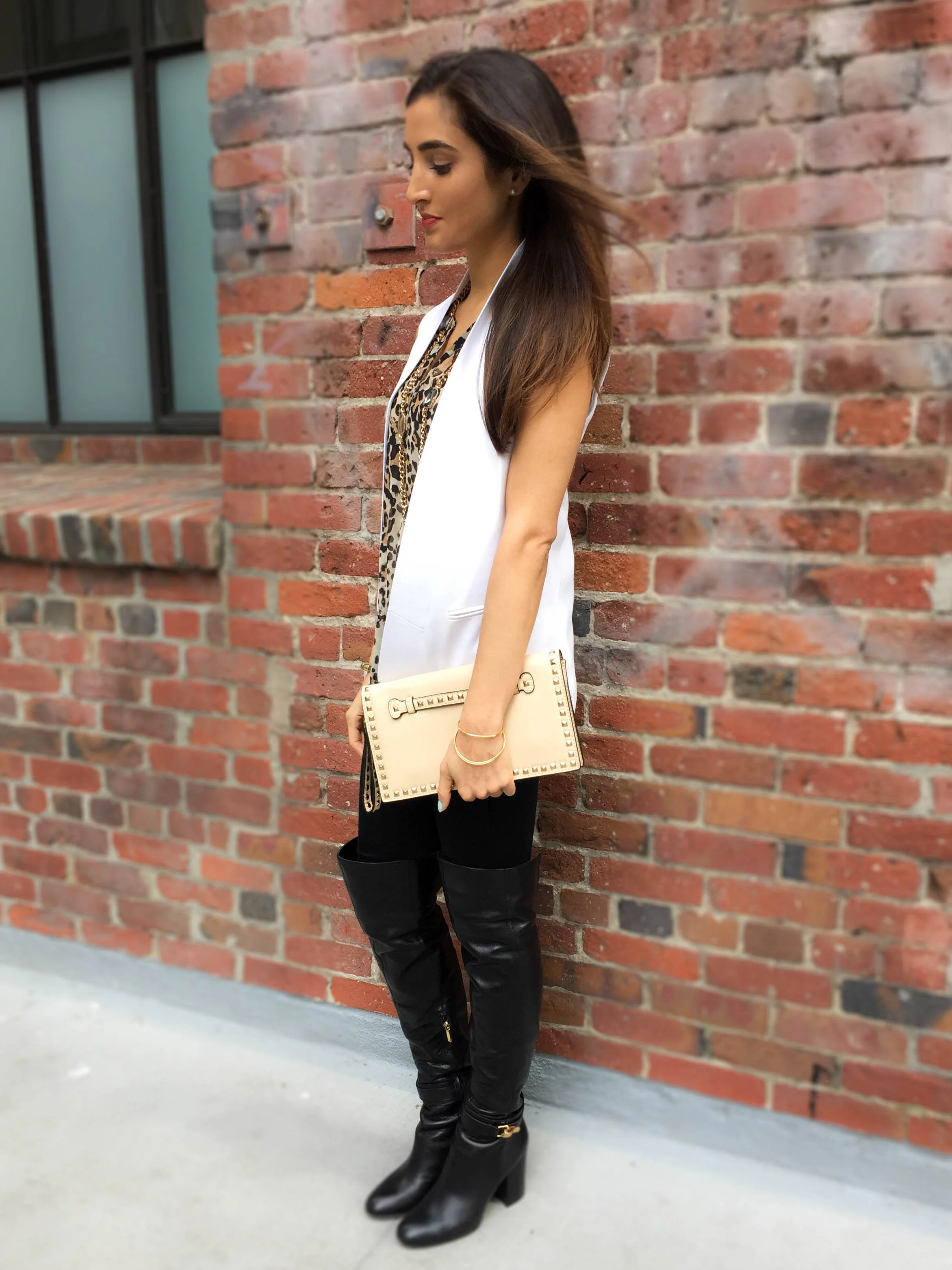 This vest is by far my favorite recent addition to my closet. It's perfect for layering, and I've been creating outfits with it in my head ever since I got it. The clutch was a birthday present from a friend who must have known that a nude clutch was exactly what I needed. I found a similar Tory Burch clutch that is just as amazing (listed above)!