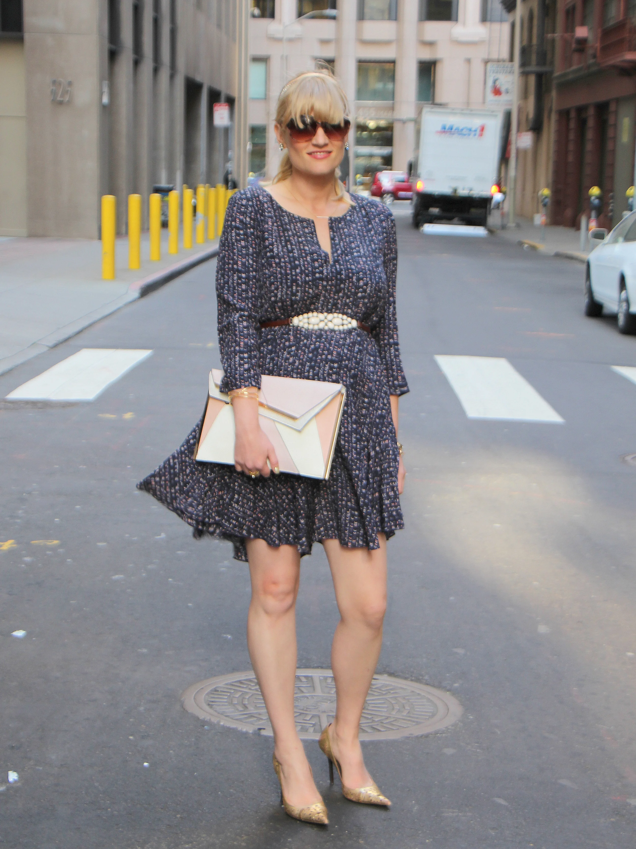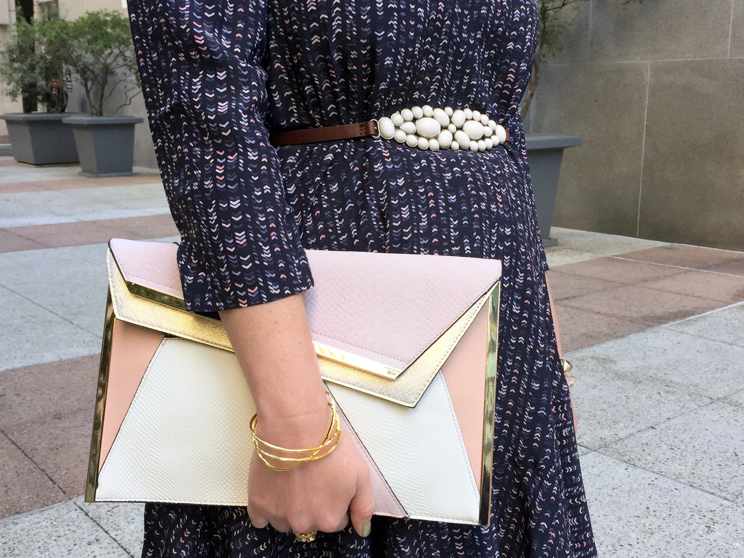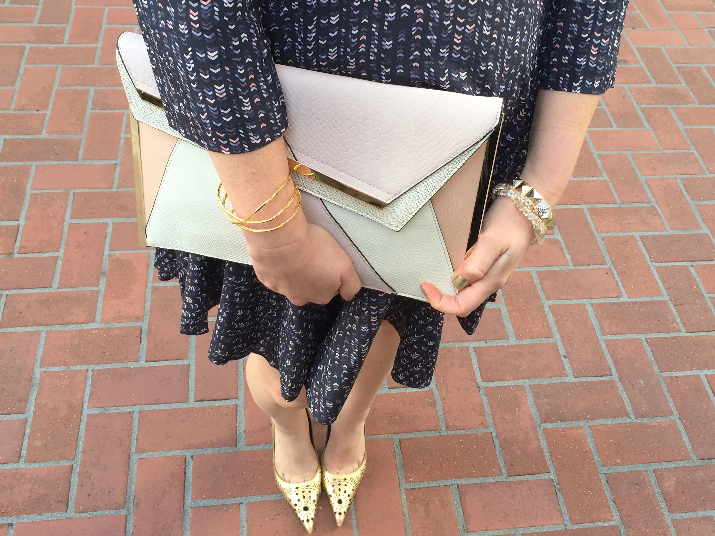 Dress: Club Monaco Junelle // Shoes: Similar here // Bag: River Island Mixed Fabric Clutch // Bracelet: Gorjana Isla Cuff; purchase here or sign up for Rocksbox here and use the code lisabff412