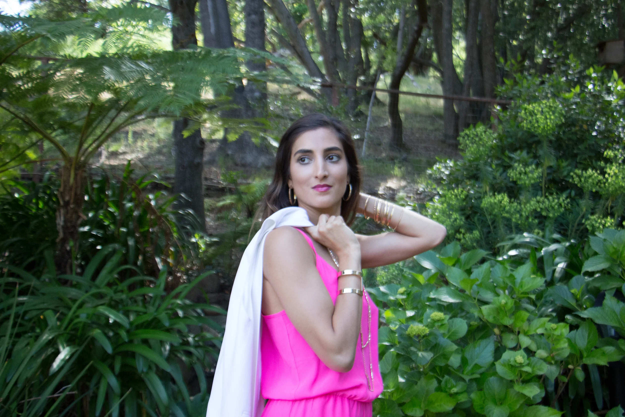 I love this pink Amanda Uprichard jumpsuit (link below). It's silky smooth, comfortable, and not to mention BRIGHT PINK! Wearing this electric pop of color is enough to boost any mood and is perfect for spring/summer ahead. I've been working up the nerve to wear this out in chilly San Francisco, but layered with this equally amazing Rebecca Minkoff vest (also below), I think I can pull it off.
